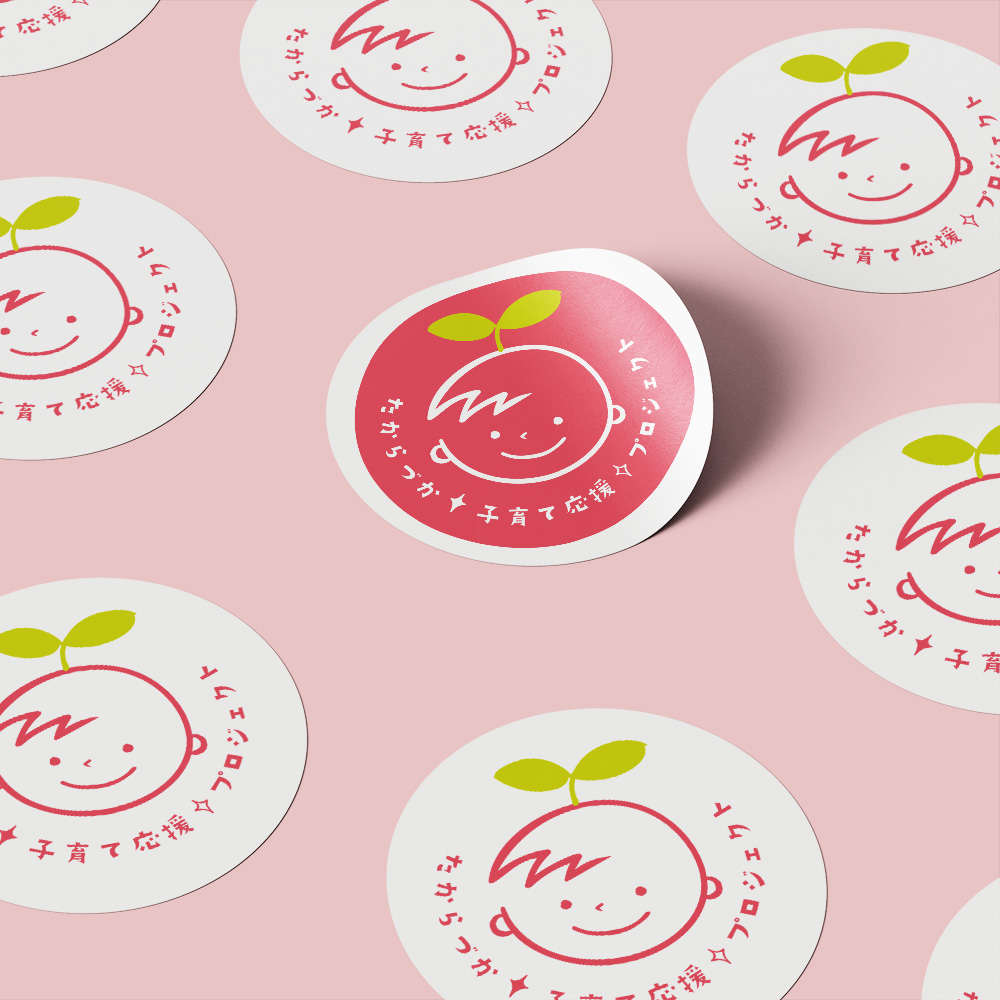 シンプルな笑顔の子どものイラストに「育み」をイメージする双葉をのせて、このプロジェクトが、子どもの笑顔や成長につながる活動になってほしいといった思いを込めました。